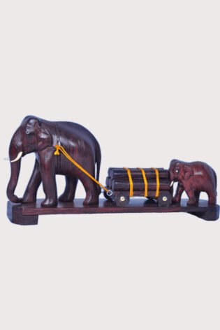 Elephant Cart Handcrafted Rosewood Showpiece – Wooden Elephant Carrying Logs Decor