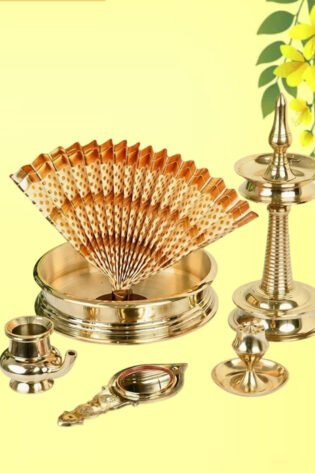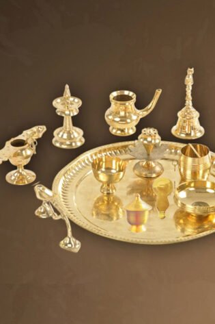 Price range: ₹500.00 through ₹550.00Ashtamangalya Set – Traditional Brass Pooja Thali Set for Auspicious Rituals