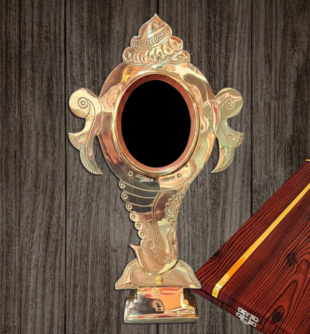 Traditionally used in auspicious occasions and part of the Vishu Kani, this mirror symbolizes prosperity, purity, and positive energy. It comes with an elegant wooden storage box, making it ideal for gifting and safe preservation.