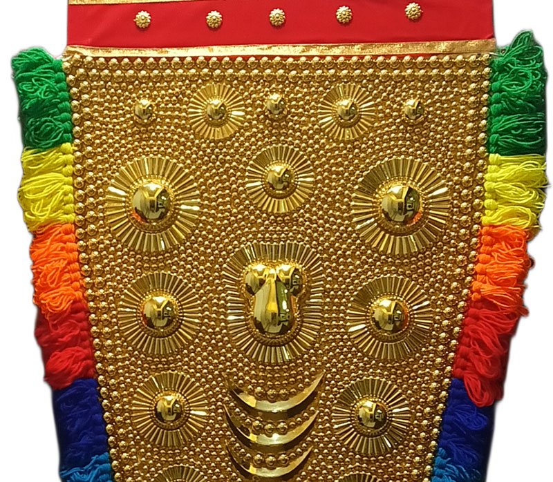 Carefully handcrafted by skilled artisans from Kerala and Bangalore, this decorative Nettipattam is made using quality materials sourced from the cultural hubs of Guruvayur and Thrissur. The vibrant multicolor (Rainbow) embellishments combined with the golden finish make it a striking wall décor item that adds traditional elegance to any space.